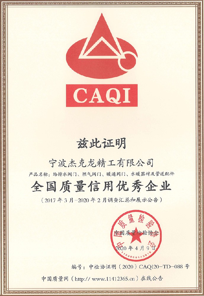 2018年11月8日,杰克龍精工公司正式獲得由浙江制造國際認證聯盟和杭州漢德質量認證服務有限公司聯合簽發的《浙江制造認證證書》,